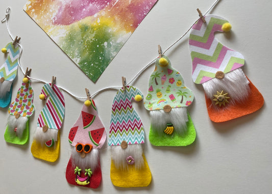 Summer Gnomes with Beards and Hats Felt Miniature Banner Garland Bunting Wall Hanging for Decoration or Party