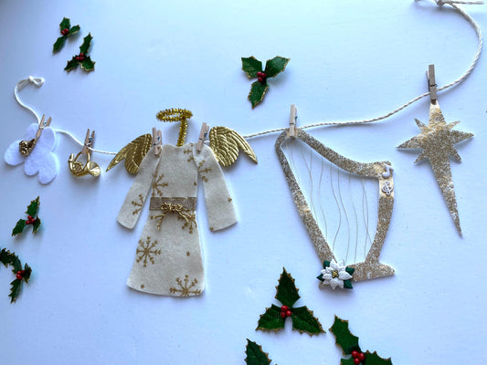 Christmas Angel Felt Miniature Clothesline Banner Garland Bunting Wall Hanging Decoration