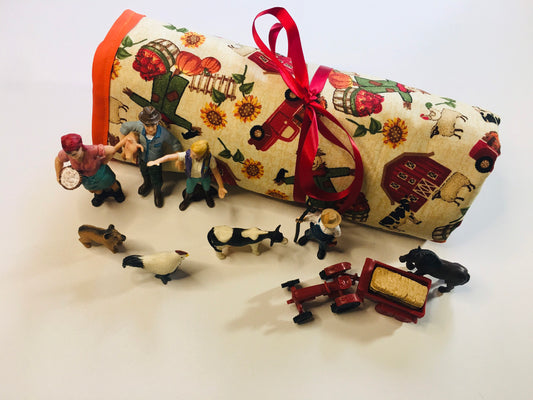 Fall Felt Playmat for Children, Autumn Roll-Up Toy, Pumpkin Patch Felt Board, Farm Stand Fun Mat with Farm Toy Figurines