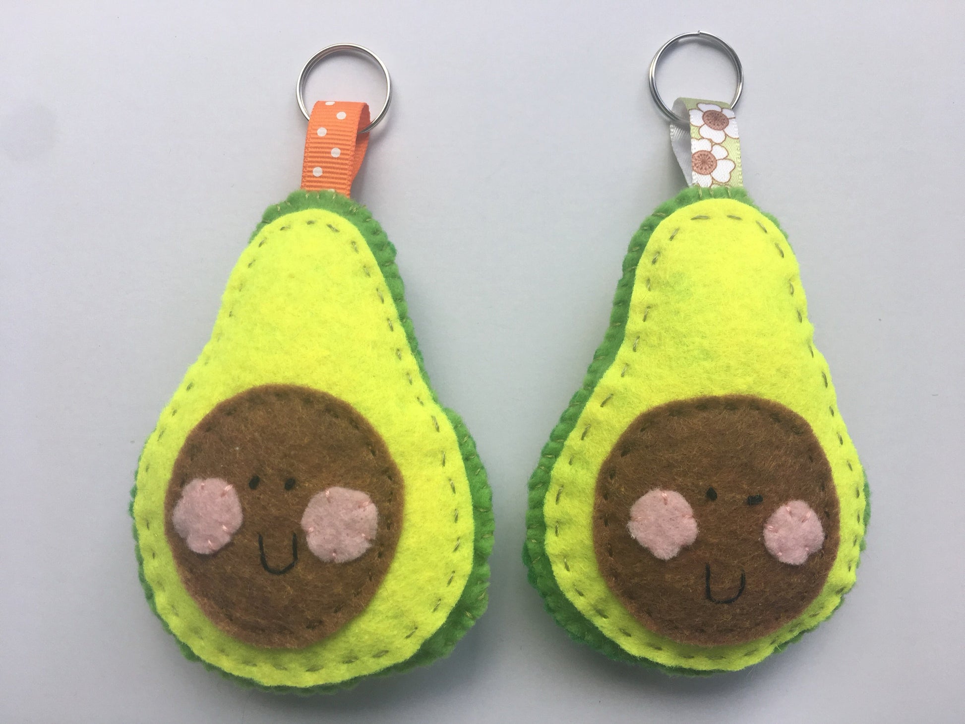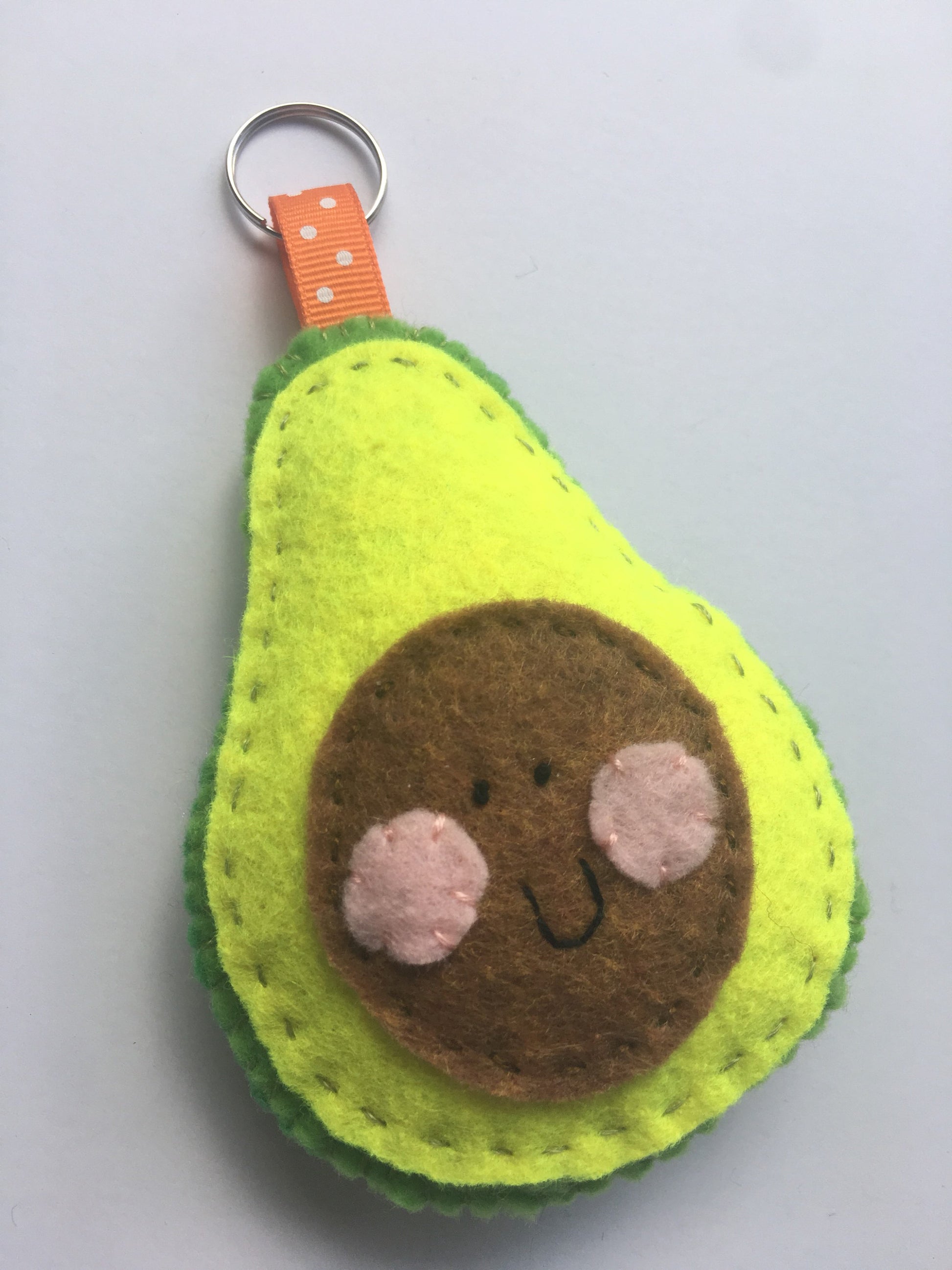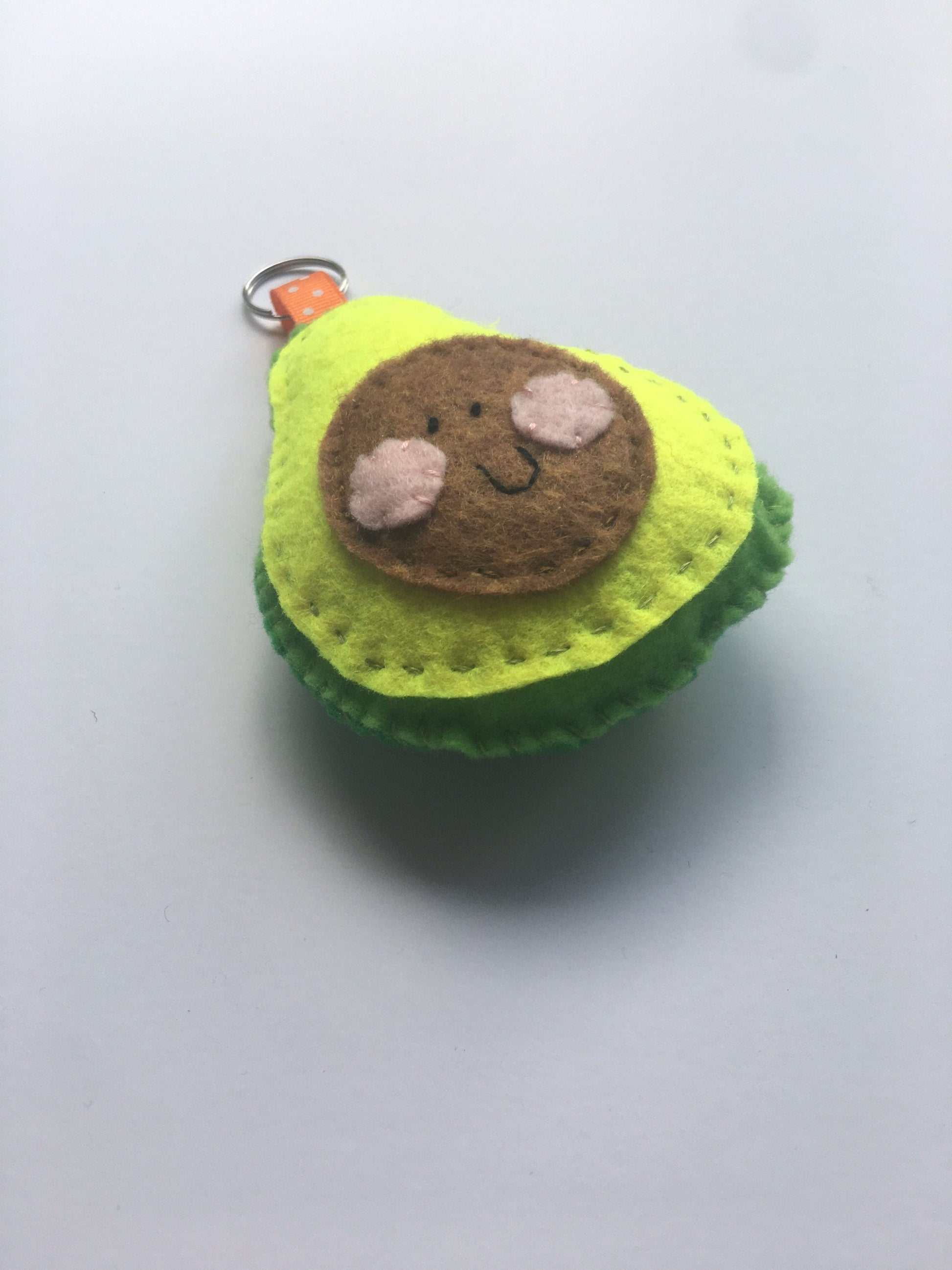 This absolutely smiley avocado will brighten up your keychain. There are three shades of green felt just like a real avocado.