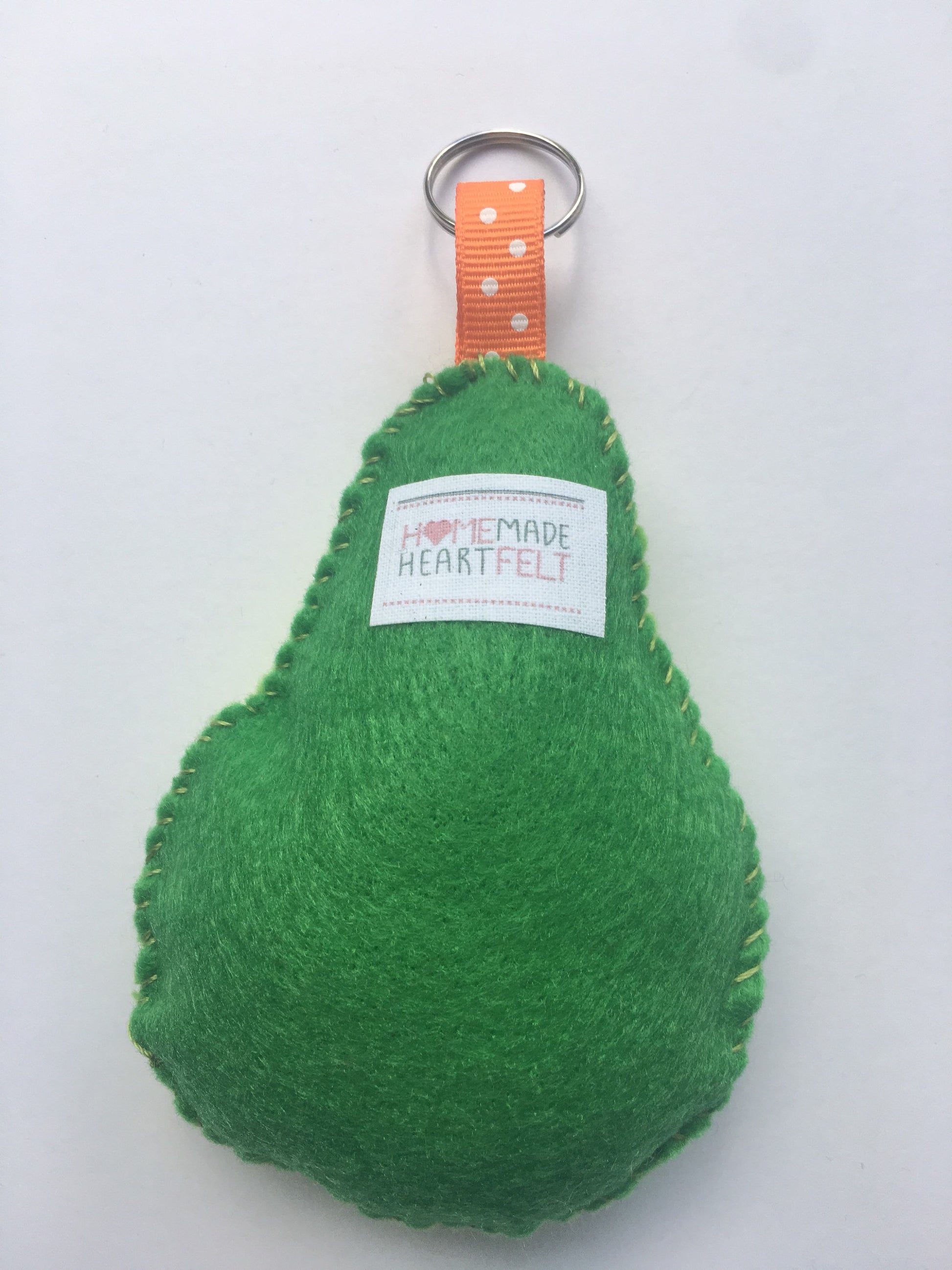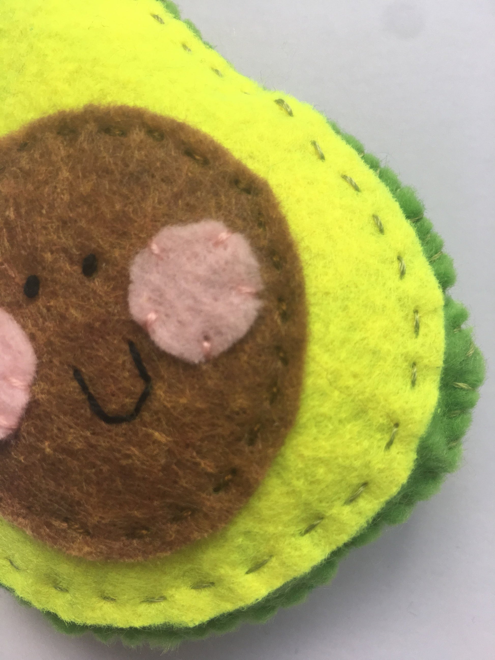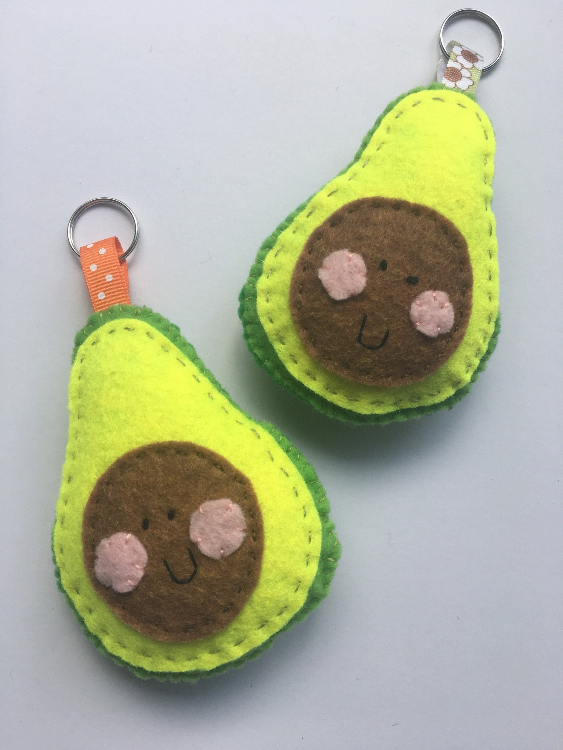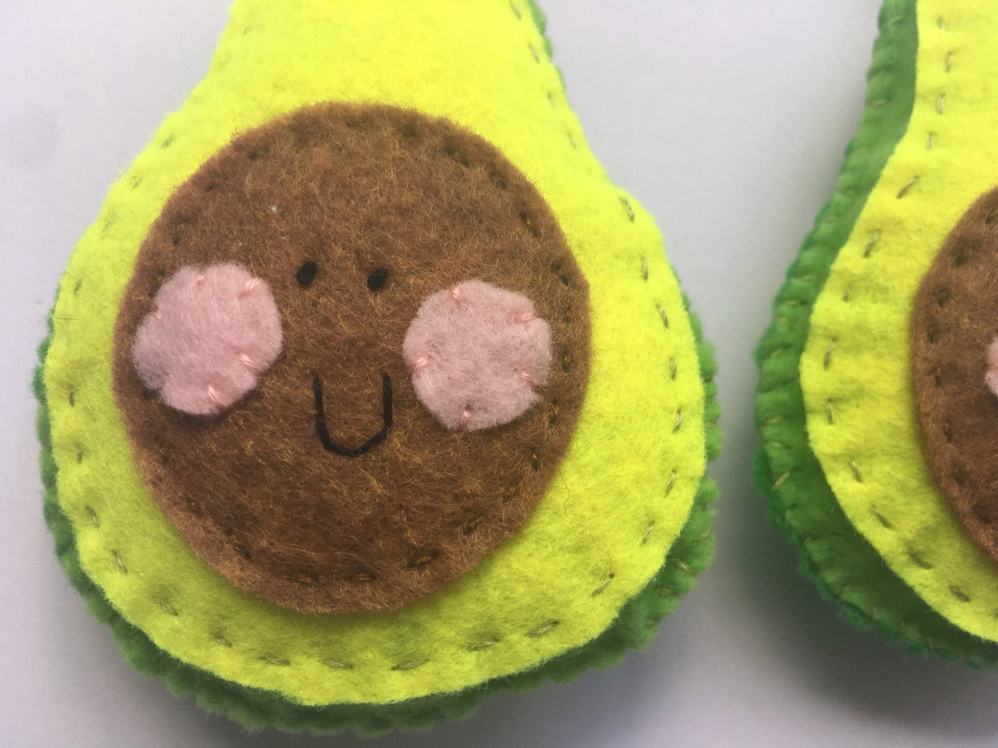 This absolutely smiley avocado will brighten up your keychain. There are three shades of green felt just like a real avocado.