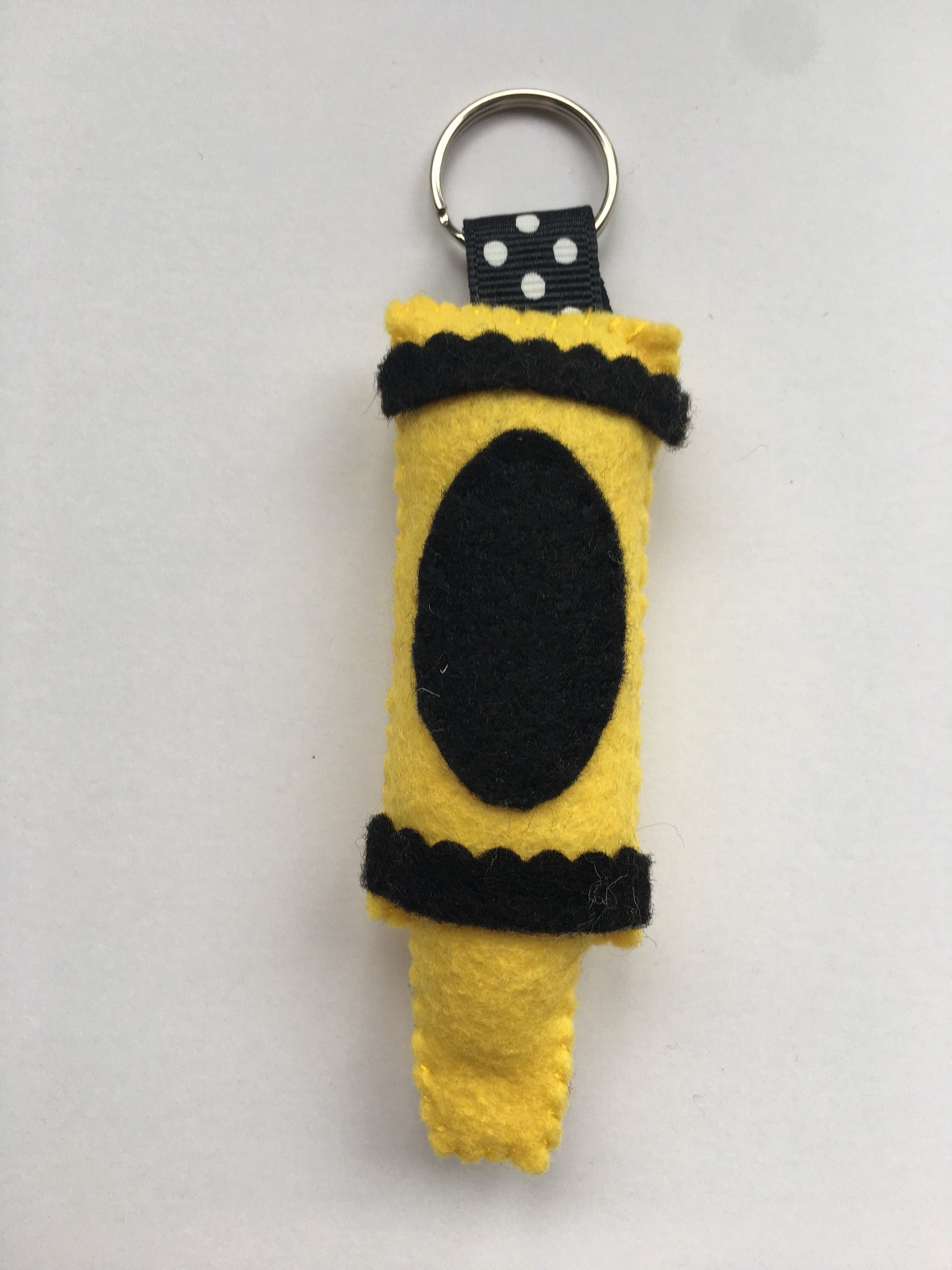 This is a handmade hand sewn felt crayon keychain. This felt crayon comes in yellow or purple- complementary colors.