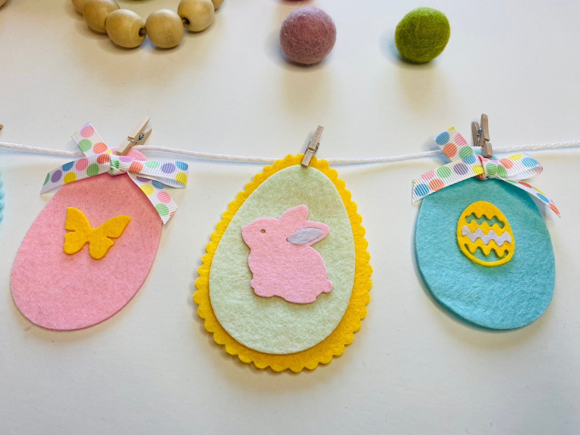 Easter Egg Miniature Felt Banner, Pastel Garland, Wall Hanging Decoration