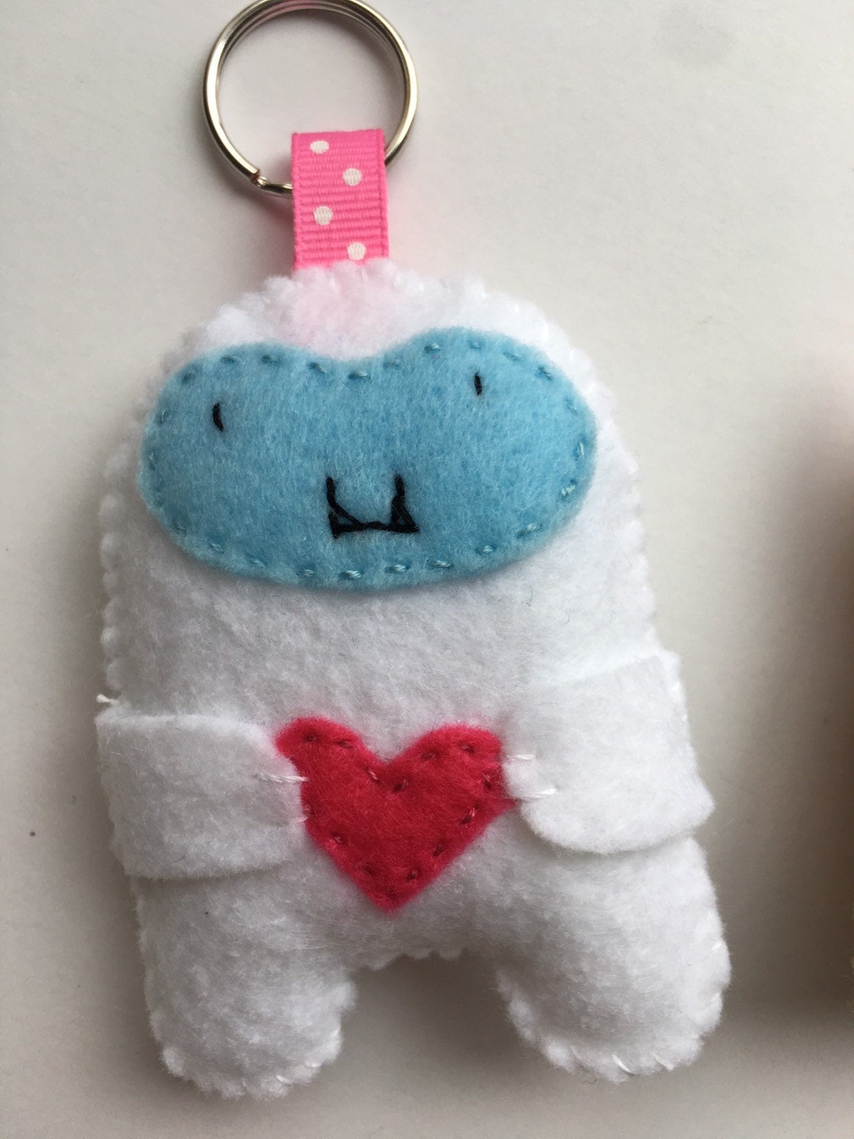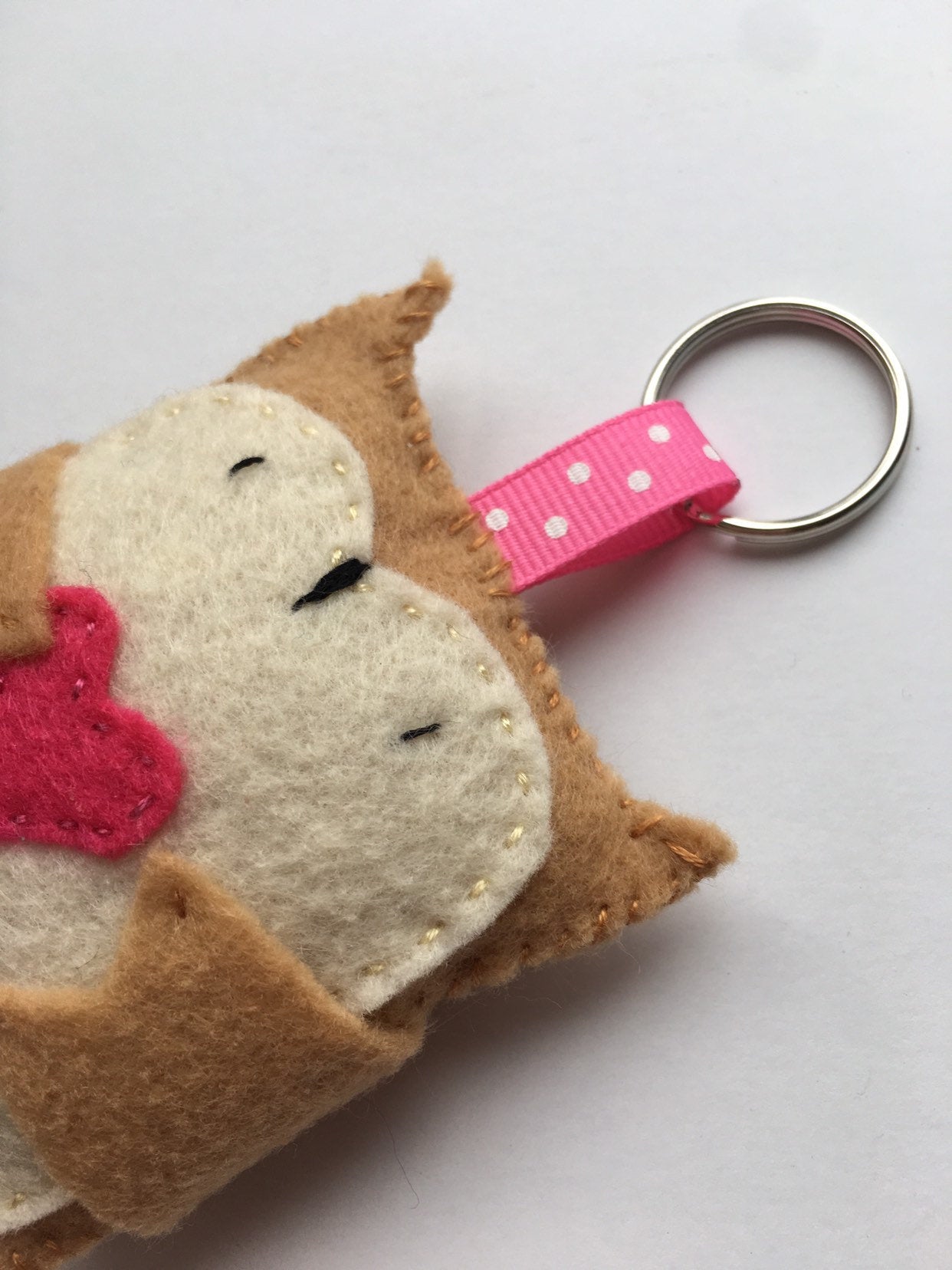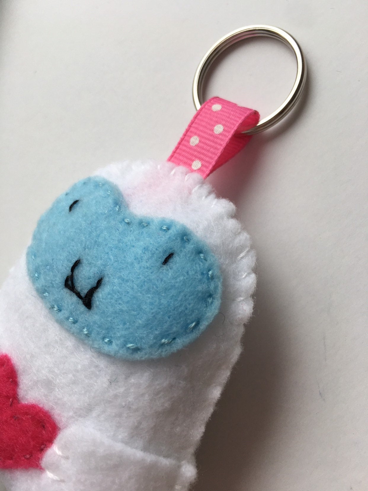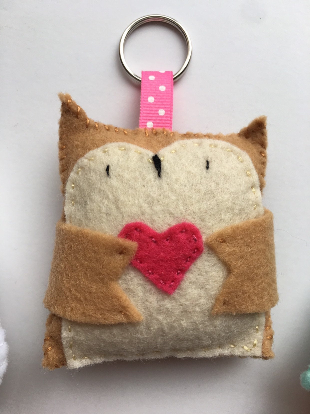 These are my keychains especially for Valentine’s Day! Who wouldn’t enjoy a fluffy stuffed felt animal holding a heart for their keychain. Perfect for attaching to backpacks, lunch boxes, keychains and more. The size makes it easy to find your keys in your bag. Also makes it hard to loose your keys with a big keychain on it! Felt is durable and only gets softer and fuzzier with age.