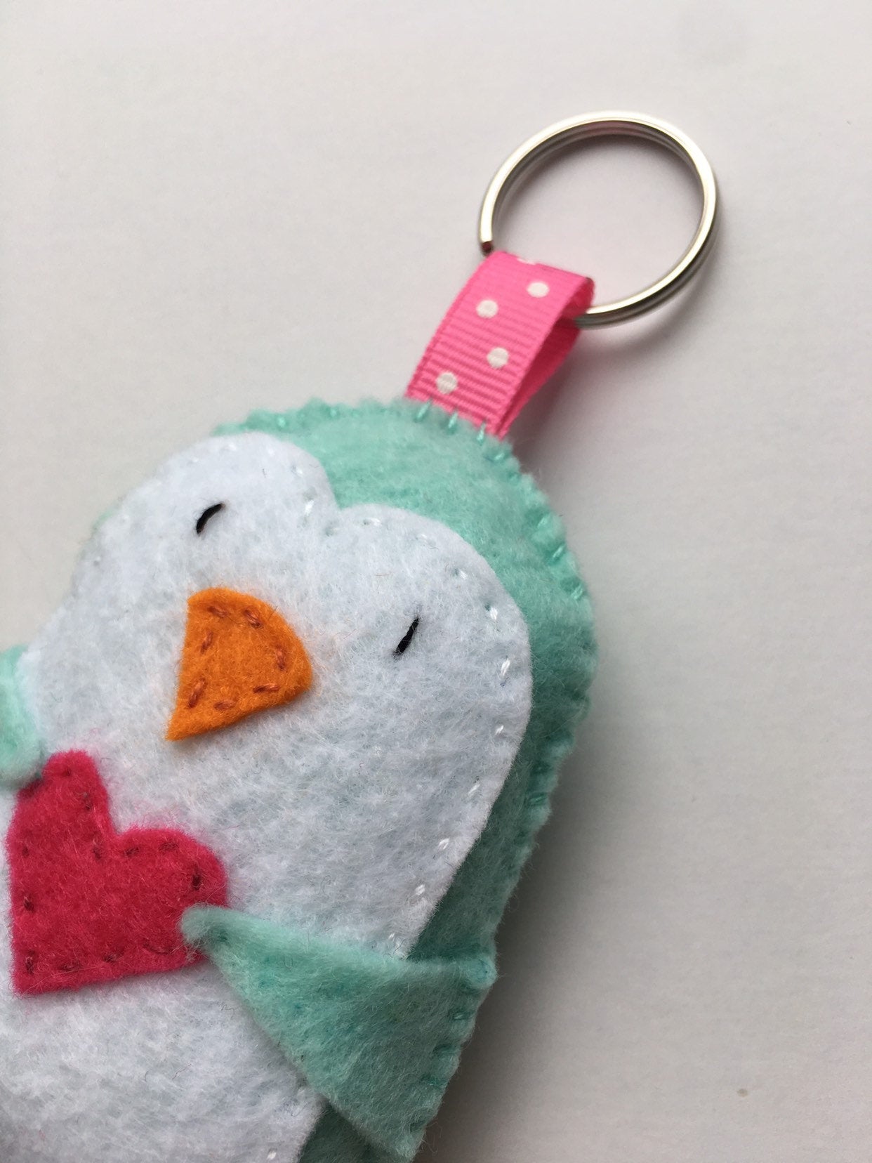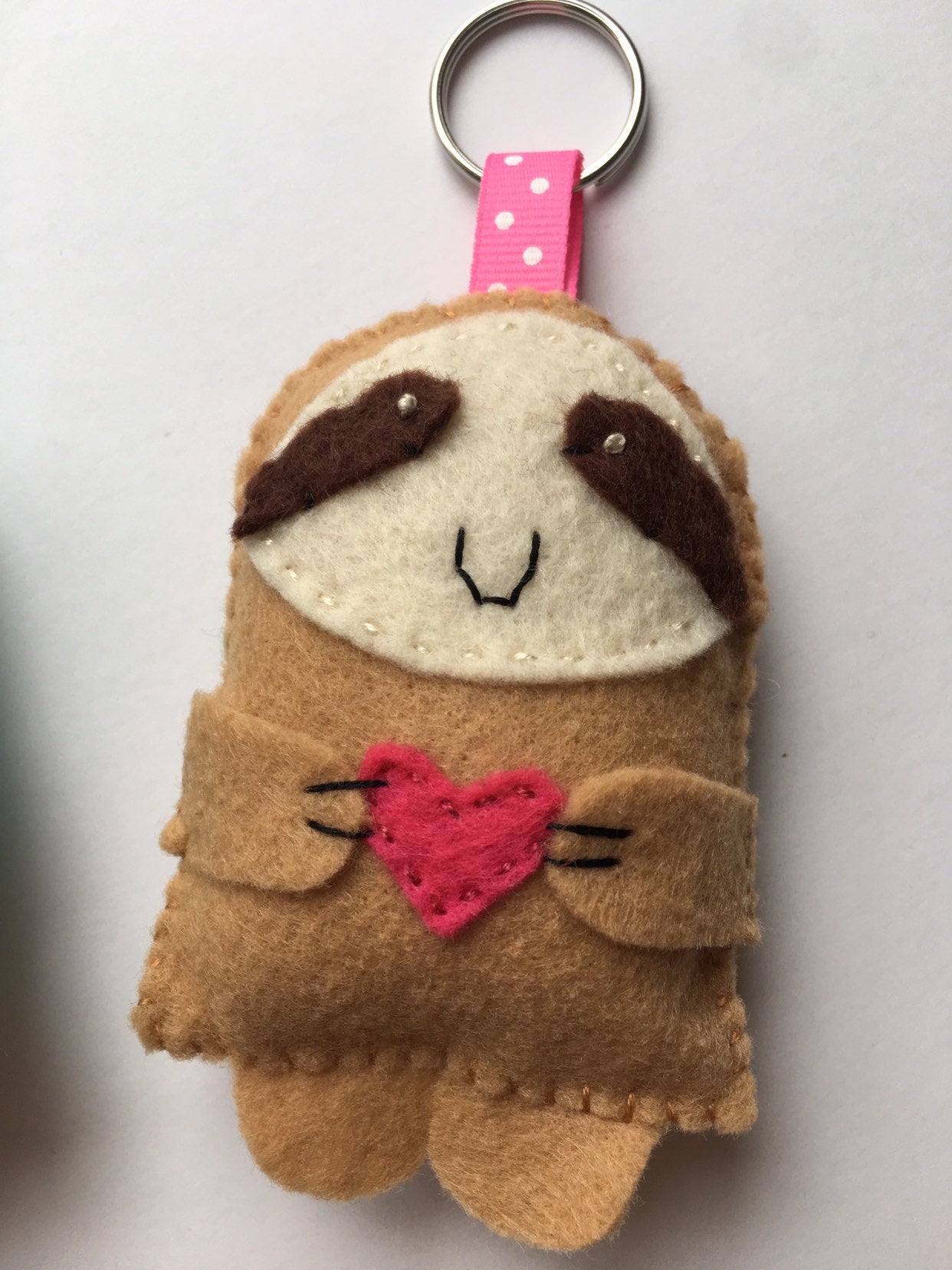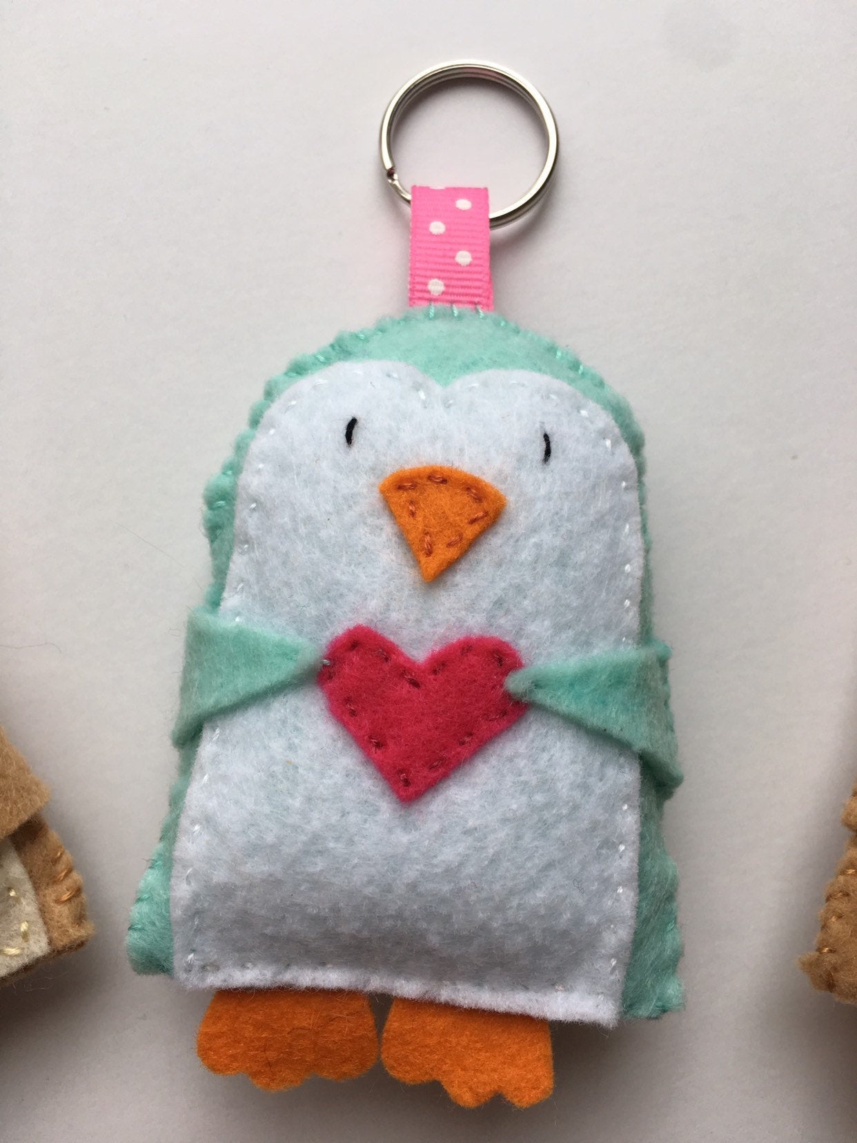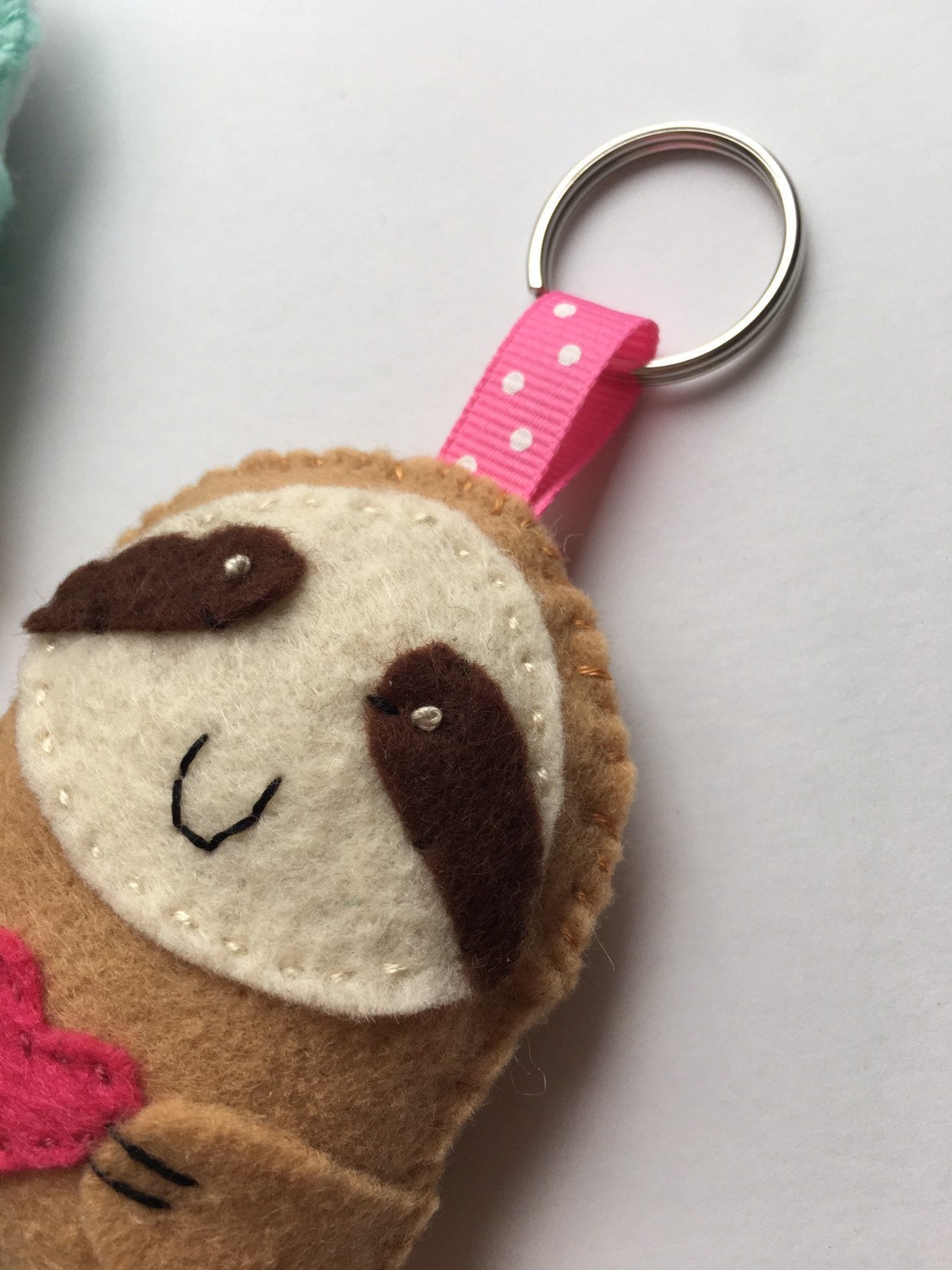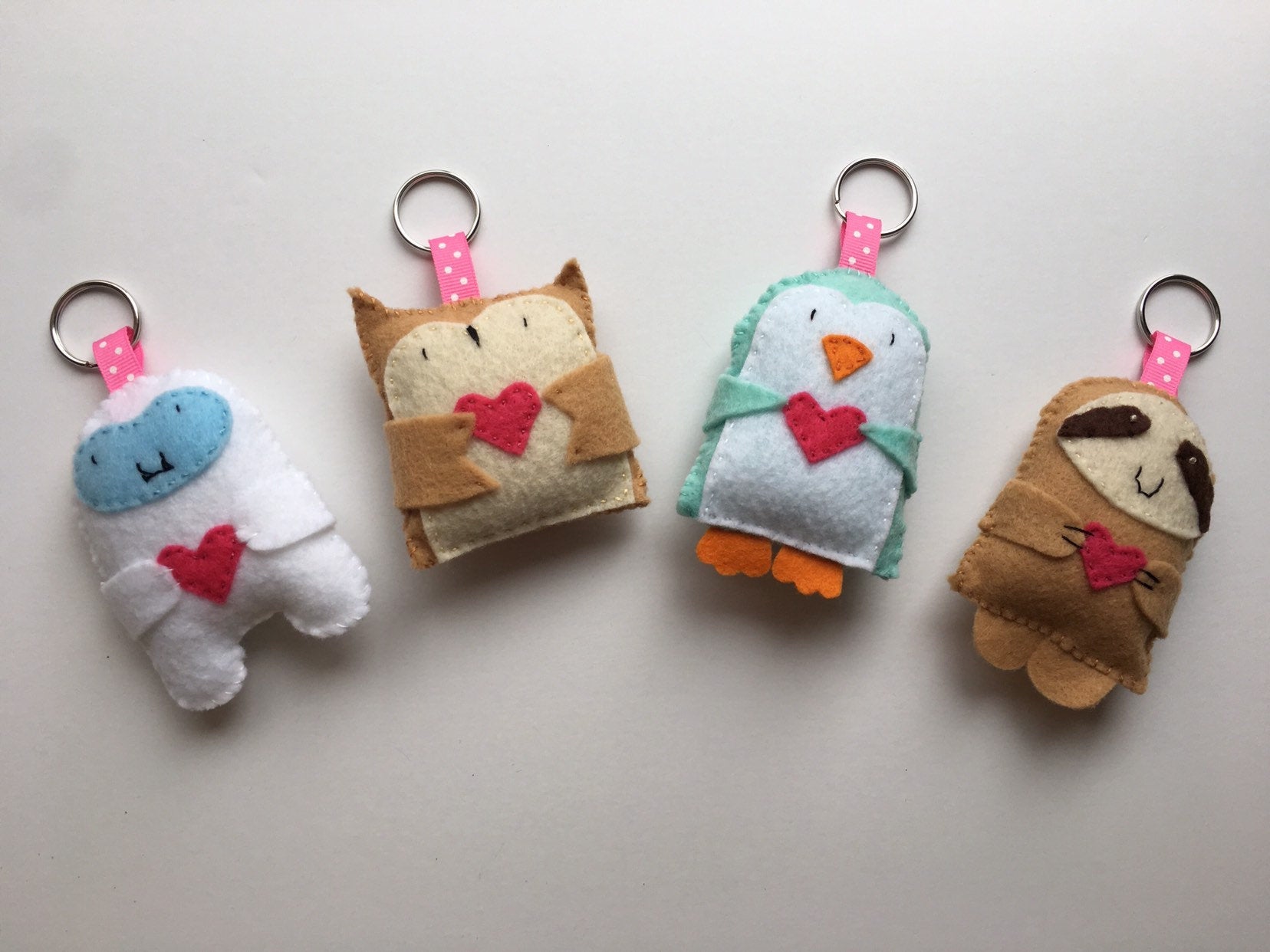 Felt Valentines Day Keychains, Sloth Keychain, Penguin Keychain, Owl Keychain, Yeti Keychain, Animals Holding Hearts Keychain