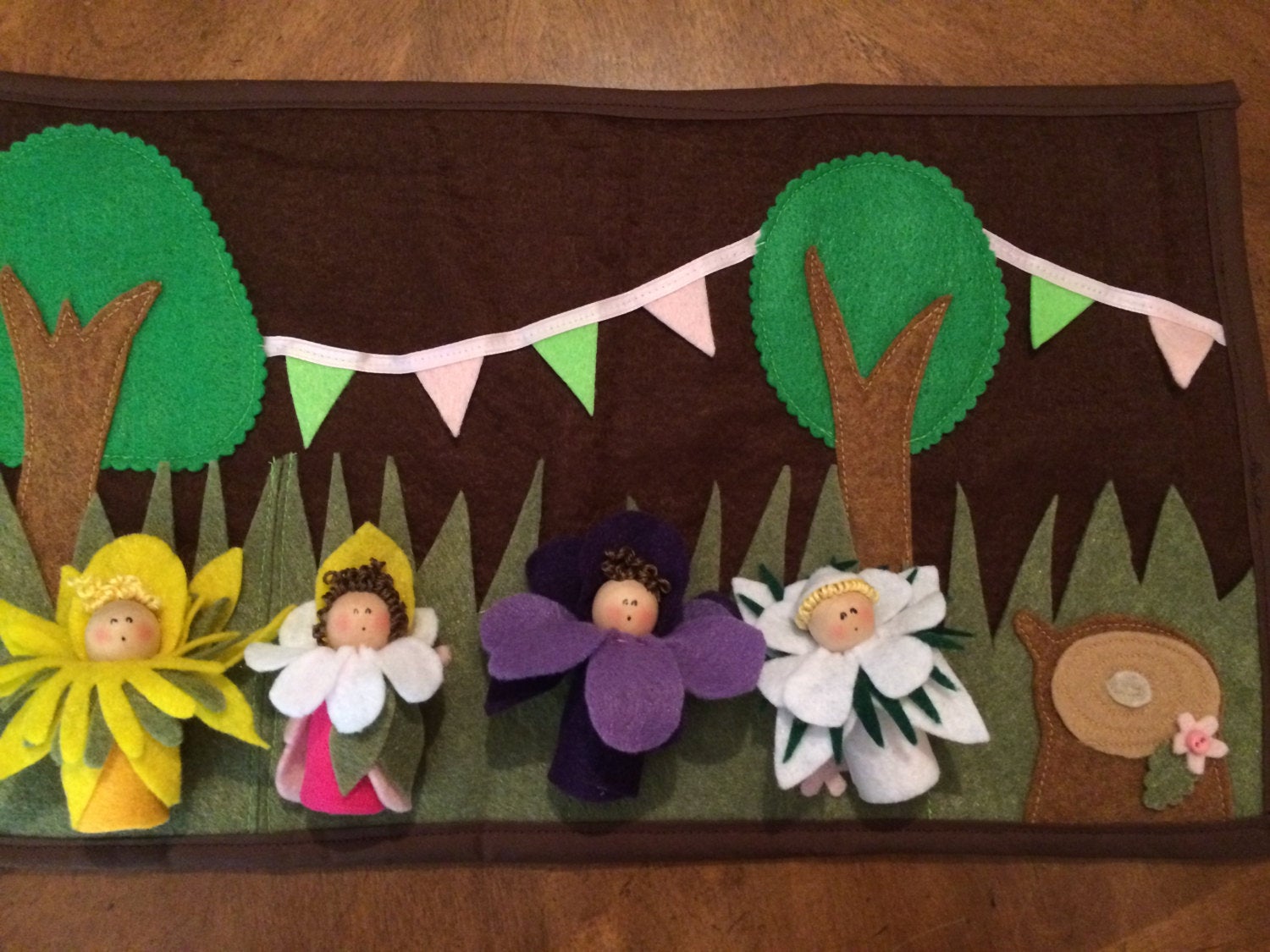 Felt Woodland Flower Fairies Playmat: Includes 4 Flower Fairy Peg Dolls