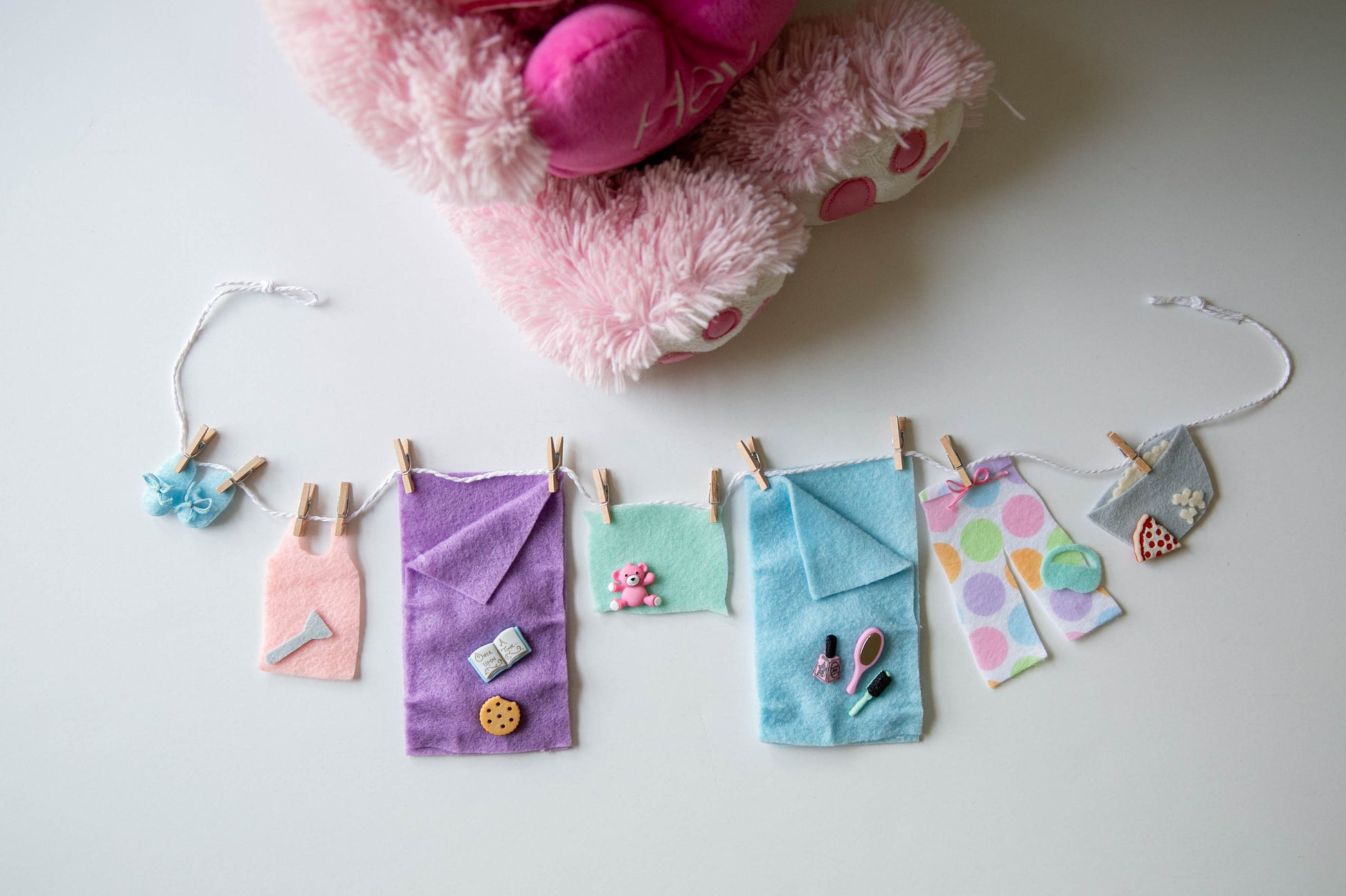 Girl's Slumber Party Sleepover Miniature Felt Clotheslines Banner Bunting Garland Wall Hanging Decoration