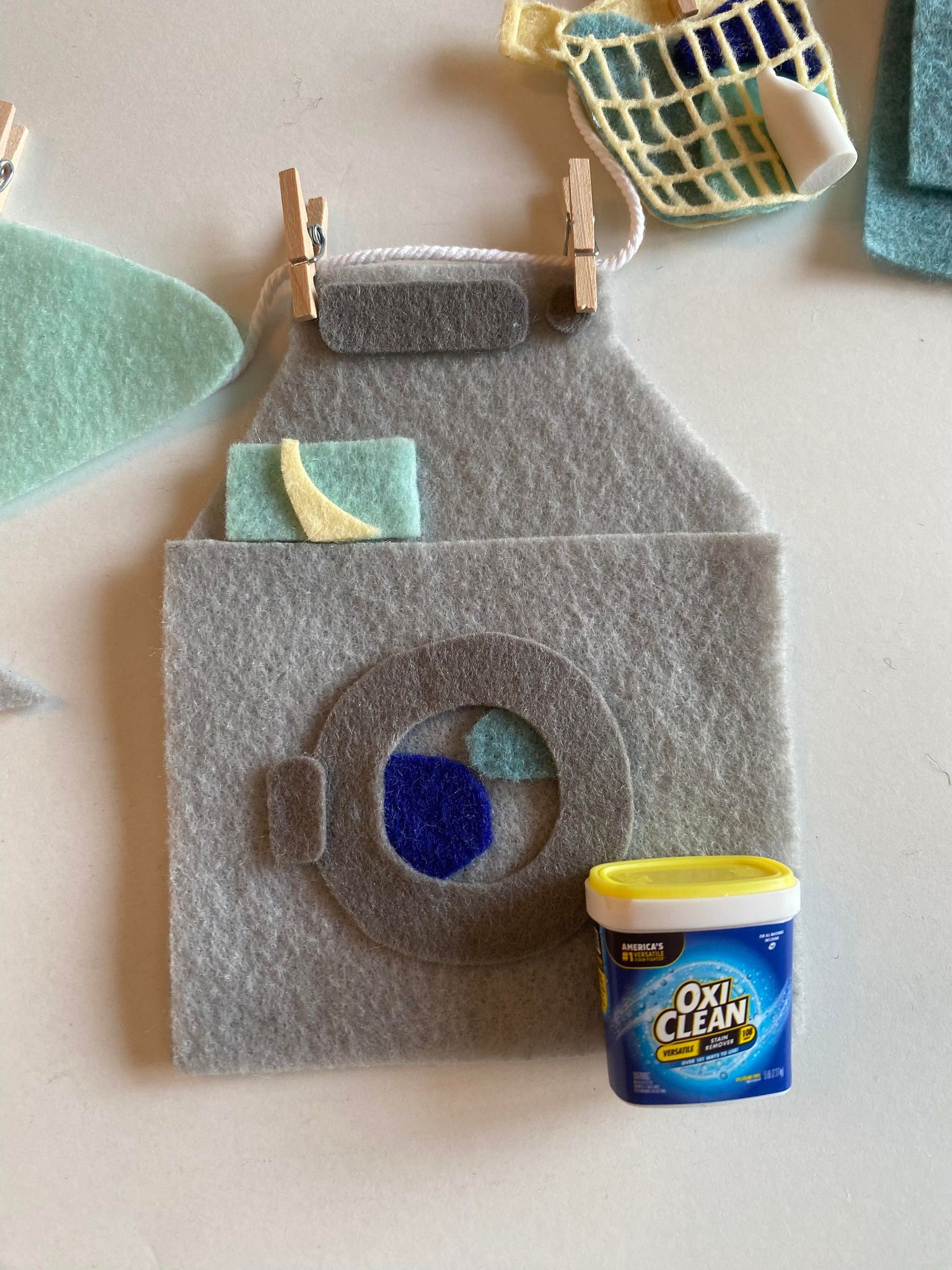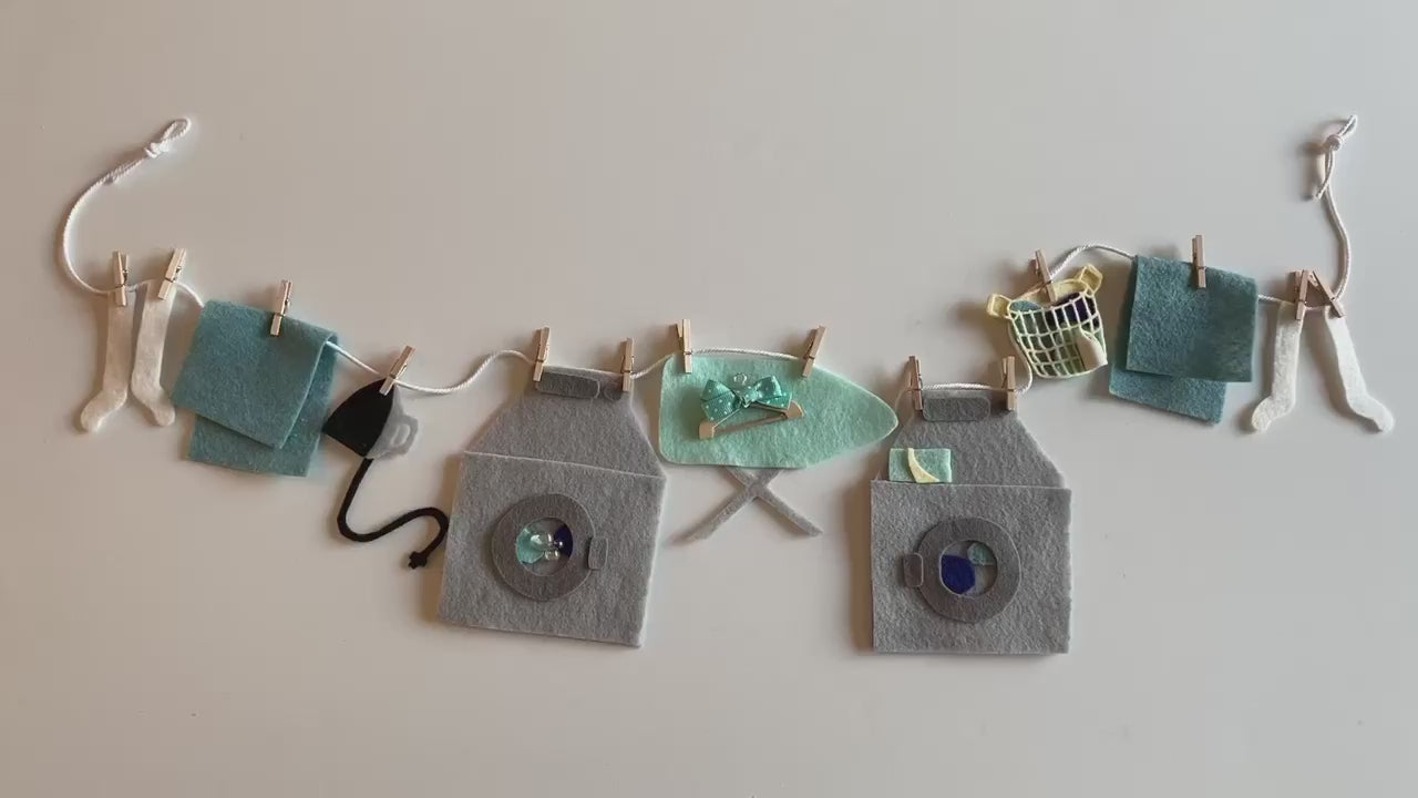 Laundry Room Miniature Felt Banner, Washing Machine Garland, Laundry Day Bunting, Wall Hanging, Decoration with Hanger, Detergent, and Iron