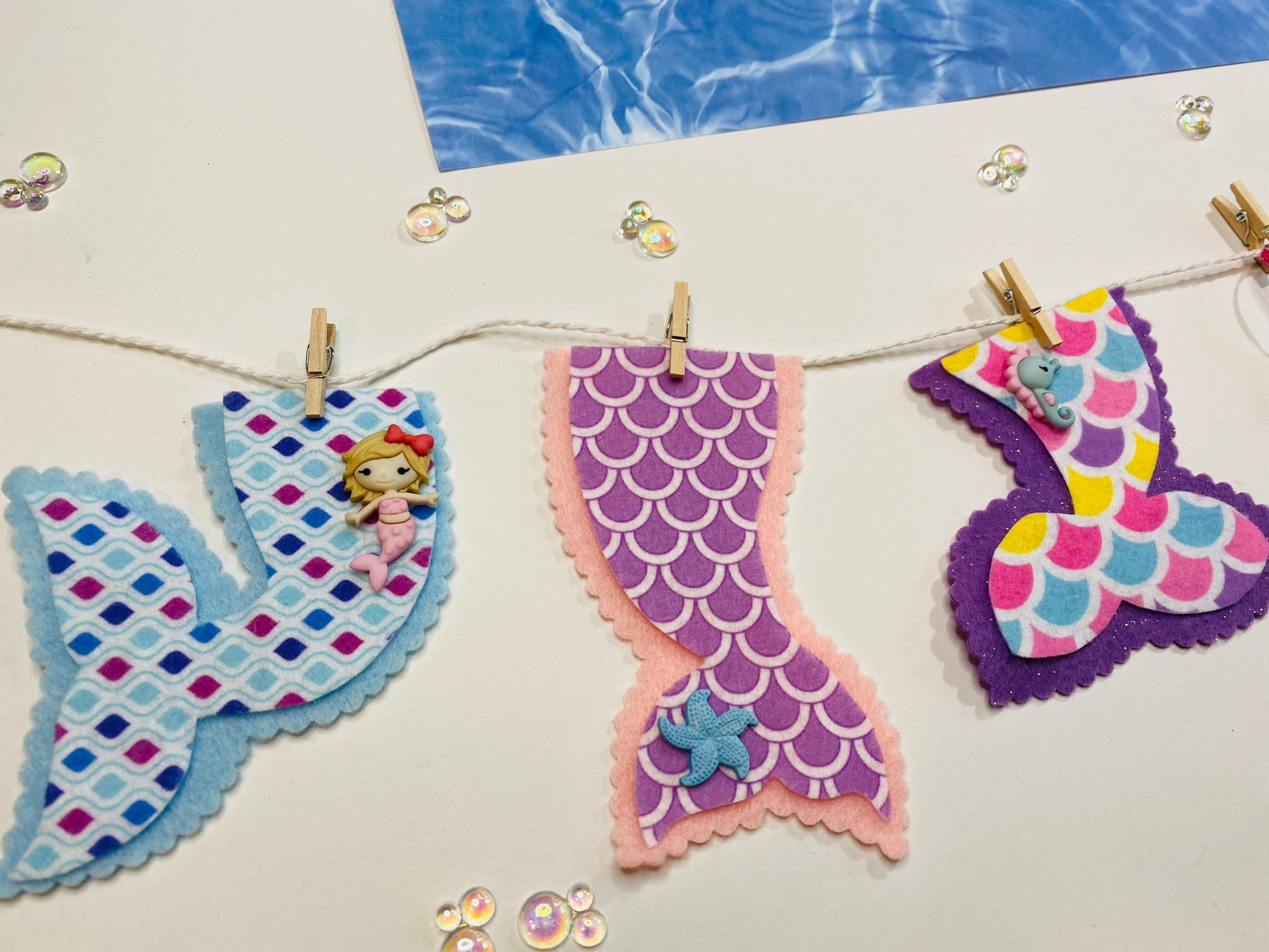 Mermaid Tail Miniature Felt Banner Garland Bunting Wall Hanging Decoration