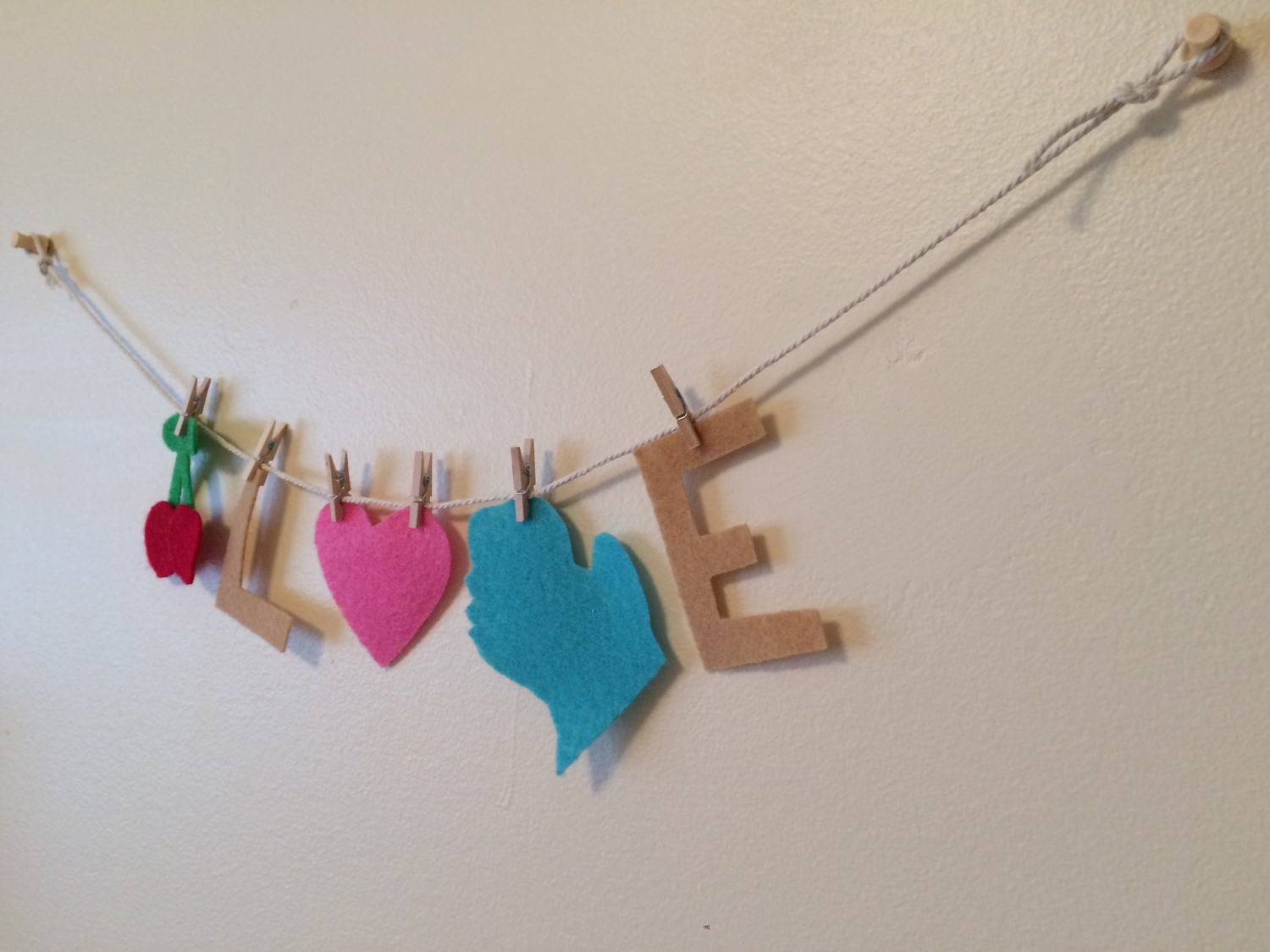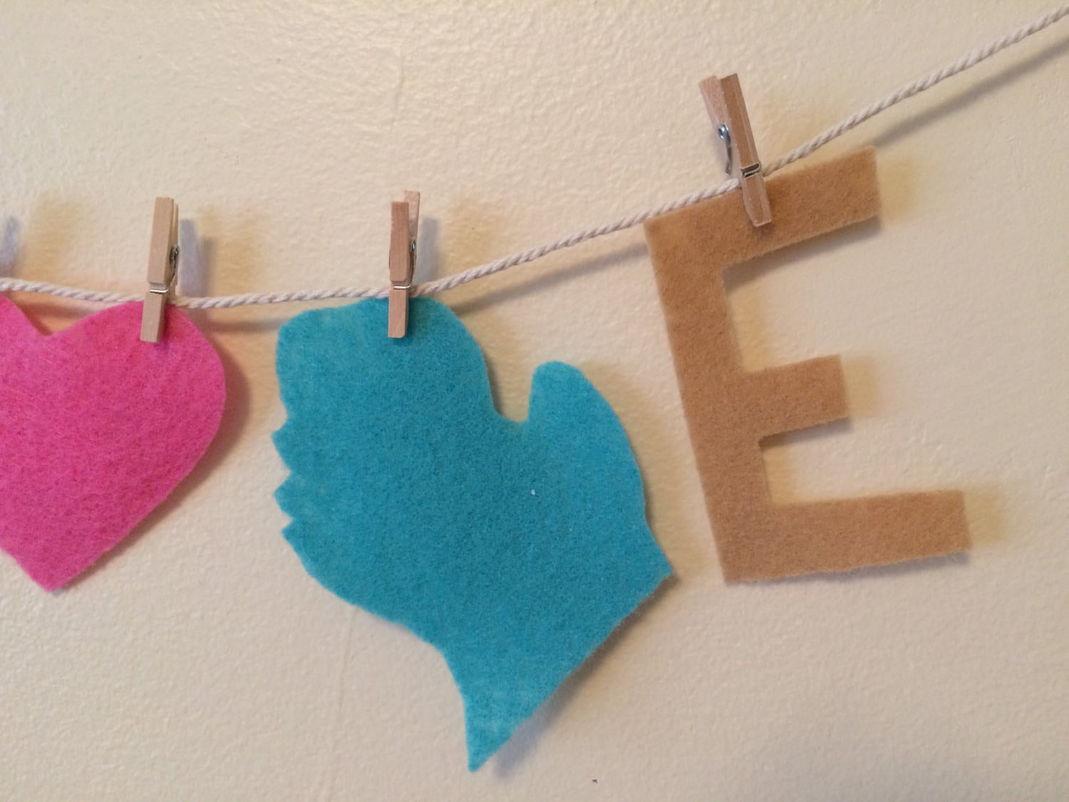 Are you a Michigander? This felt clothesline is the perfect way to show your love of Michigan. Makes a great housewarming gift or college graduation gift.