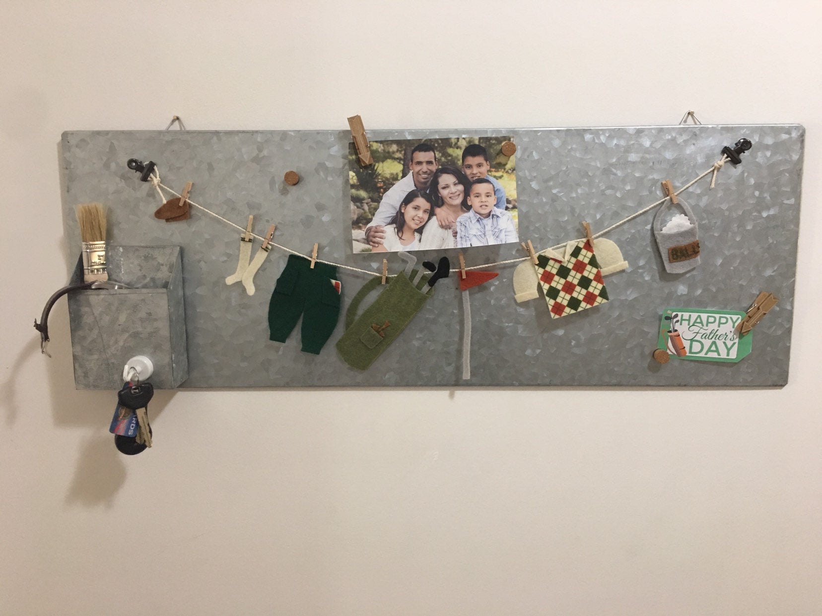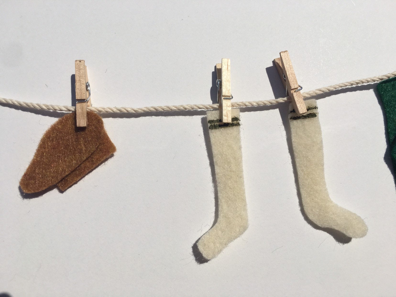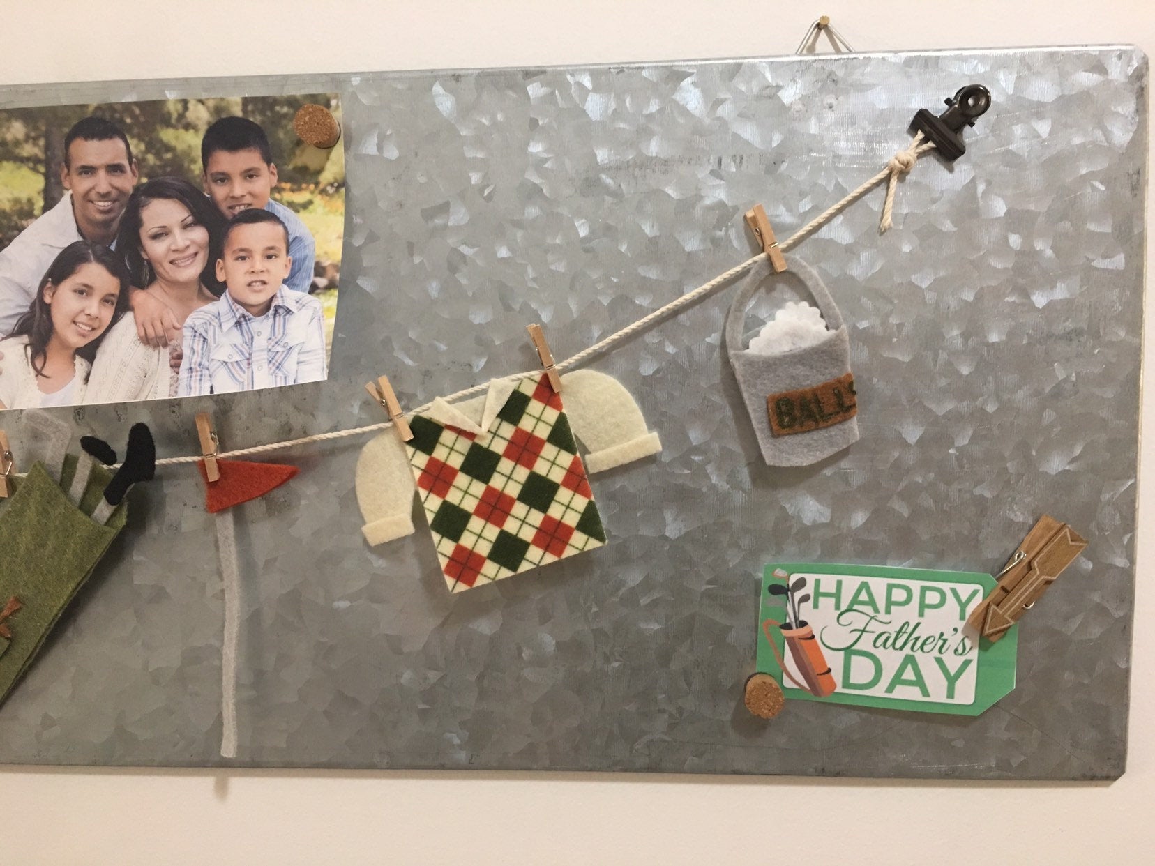 This is a miniature felt clothesline of a traditional golfer. After a long round of golf it’s time to launder the uniform! This is the perfect gift for the dad who loves golf or the golf enthusiast. Pins up easily on a bulletin board or magnetic board.