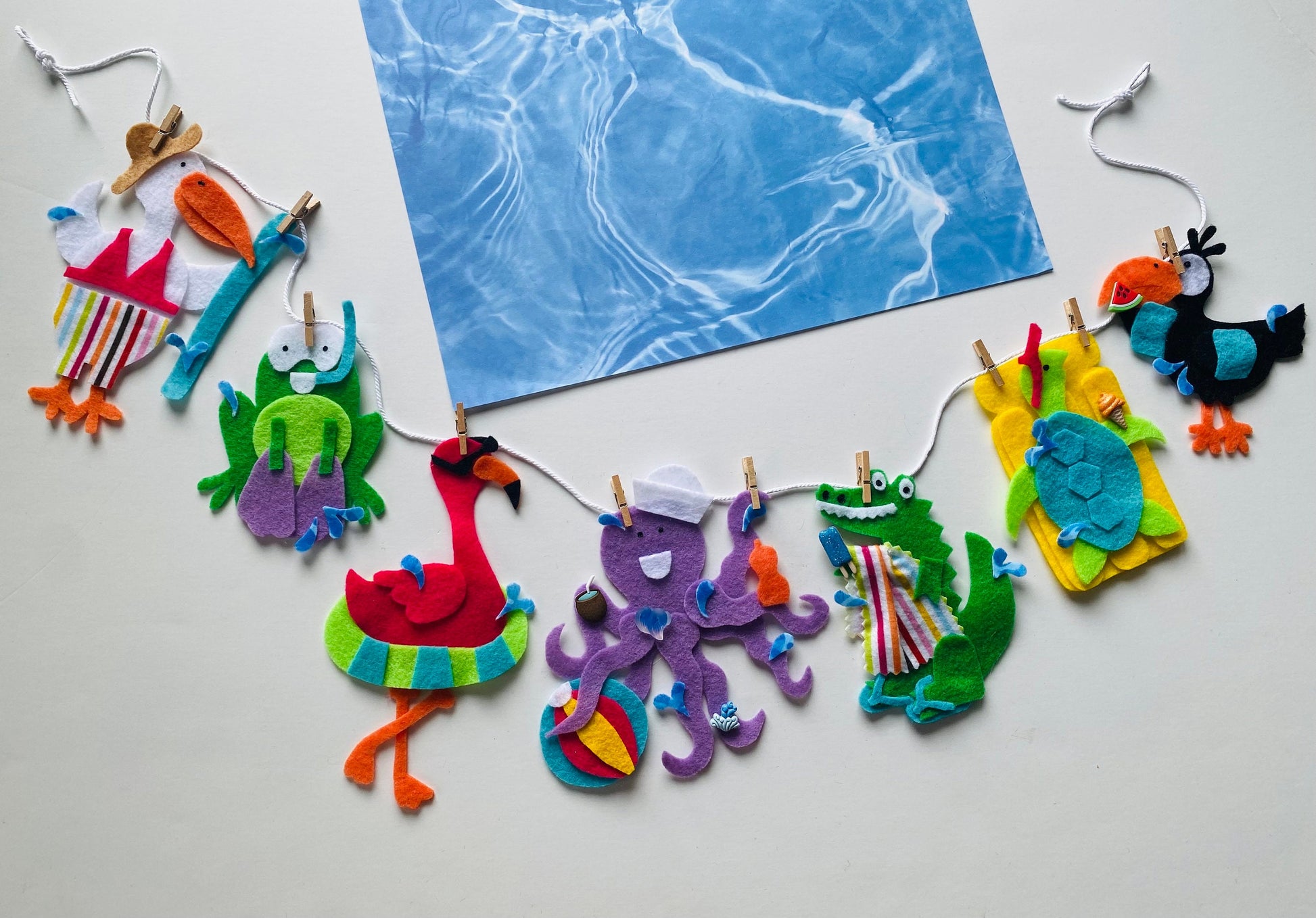Pool Party Animal Banner, Tropical Creatures Garland, Summer Fun Bunting for Decoration