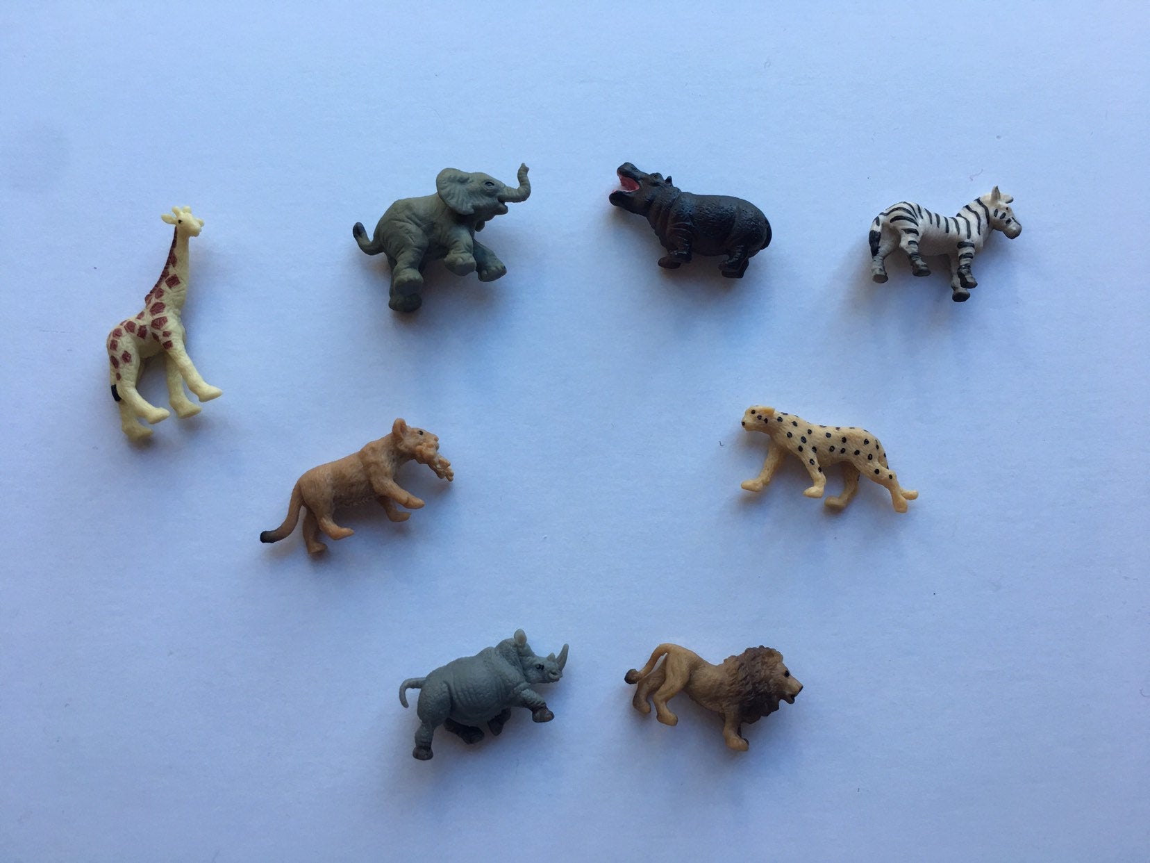 My Mini Safari features a tree with the sun, a mud pit, rocks and grass. It comes with the soft, rubbery, bendy toys that are only 1 inch long.