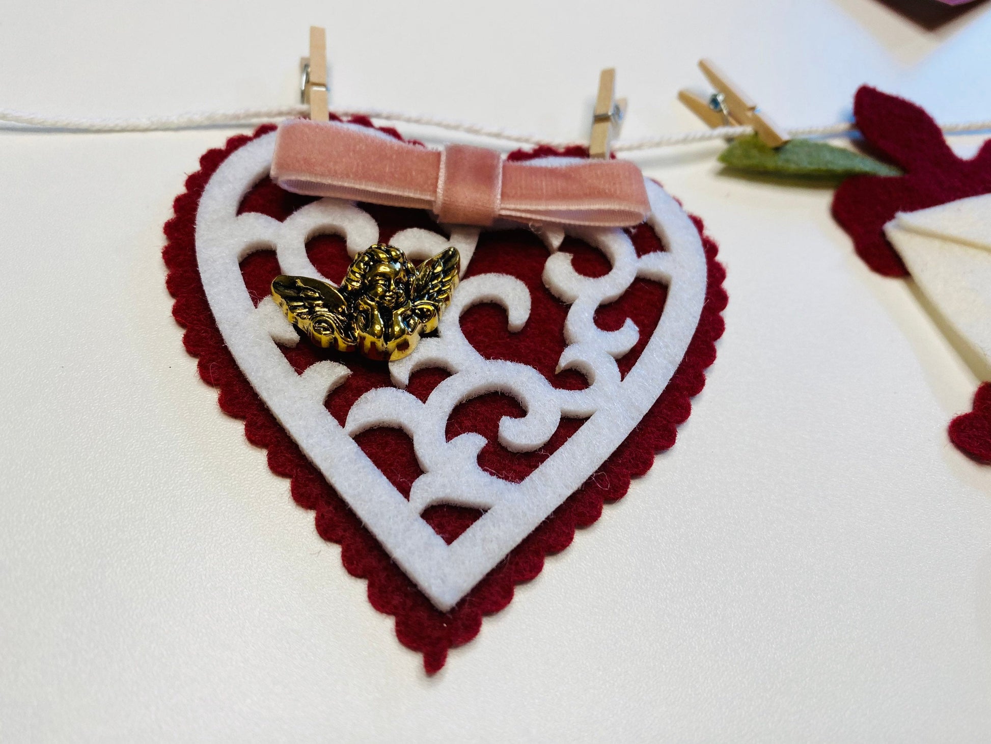 Victorian Valentine’s Writing Miniature Felt Clothesline Banner Garland Bunting Wall Hanging Decoration